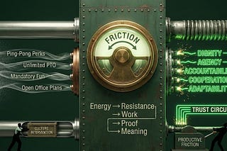 Why every corporate “happiness fix” fails: the Law of Friction and Meaning explains why removing resistance destroys trust, and why only engineered…