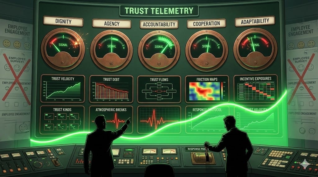A telemetry system that measures trust the way an engineer measures structural load, vibration frequency, thermal stress, or circuit integrity.