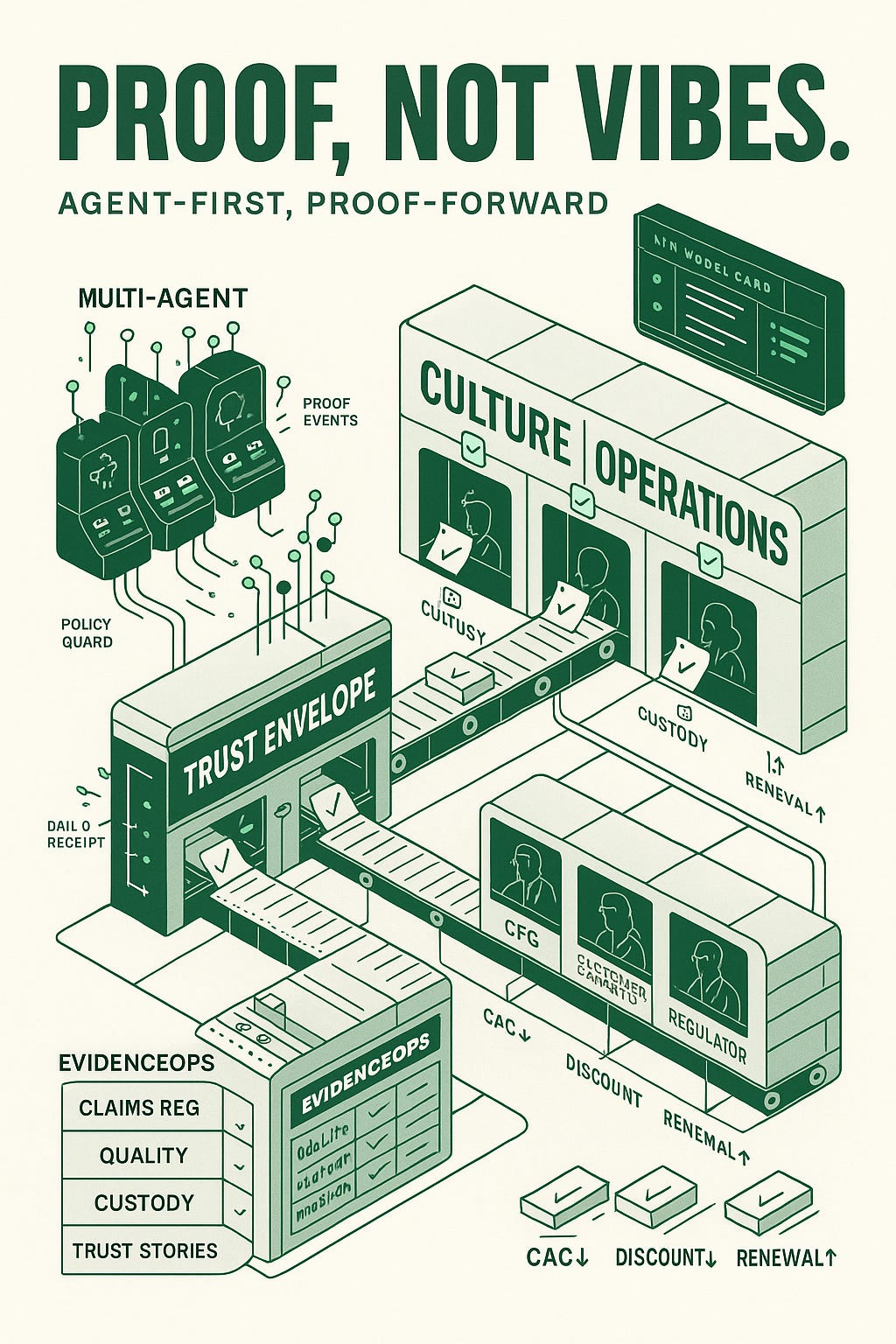 The consultancy framing treats trust as an afterthought, a “governance layer” to be bolted on once the agents are humming. This is precisely backward. In a world where autonomous systems touch customer data, approve discounts, route support tickets, and generate communications at scale, proof becomes the product. Not proof as theater, SOC 2 badges and insurance certificates, but proof as a manufactured, renewable, auditable stream of artifacts that converts skepticism into contracts, objections into approvals, and discount pressure into pricing power.